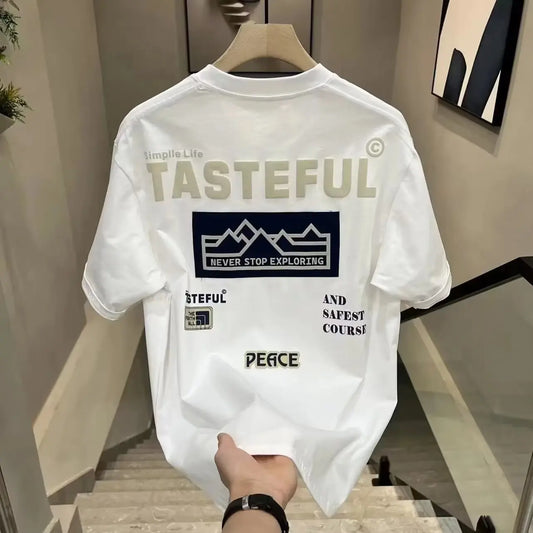 Casual Men's Clothing Luxury Round Neck Pure Cotton T-shirt Funny Streetwear Summer Fashion Vintage Y2k Style Top Oversized Tee